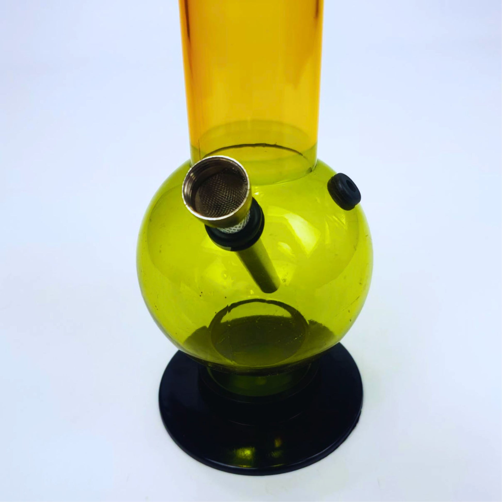 An acrylic sphere-shaped water pipe (round design), 12 inches tall, made for a comfortable grip. Lightweight and easy to carry, it’s great for beginners and anyone who wants a simple, everyday piece. The body is made from 3mm-thick acrylic, making it durable, easy to maintain, and simple to clean.