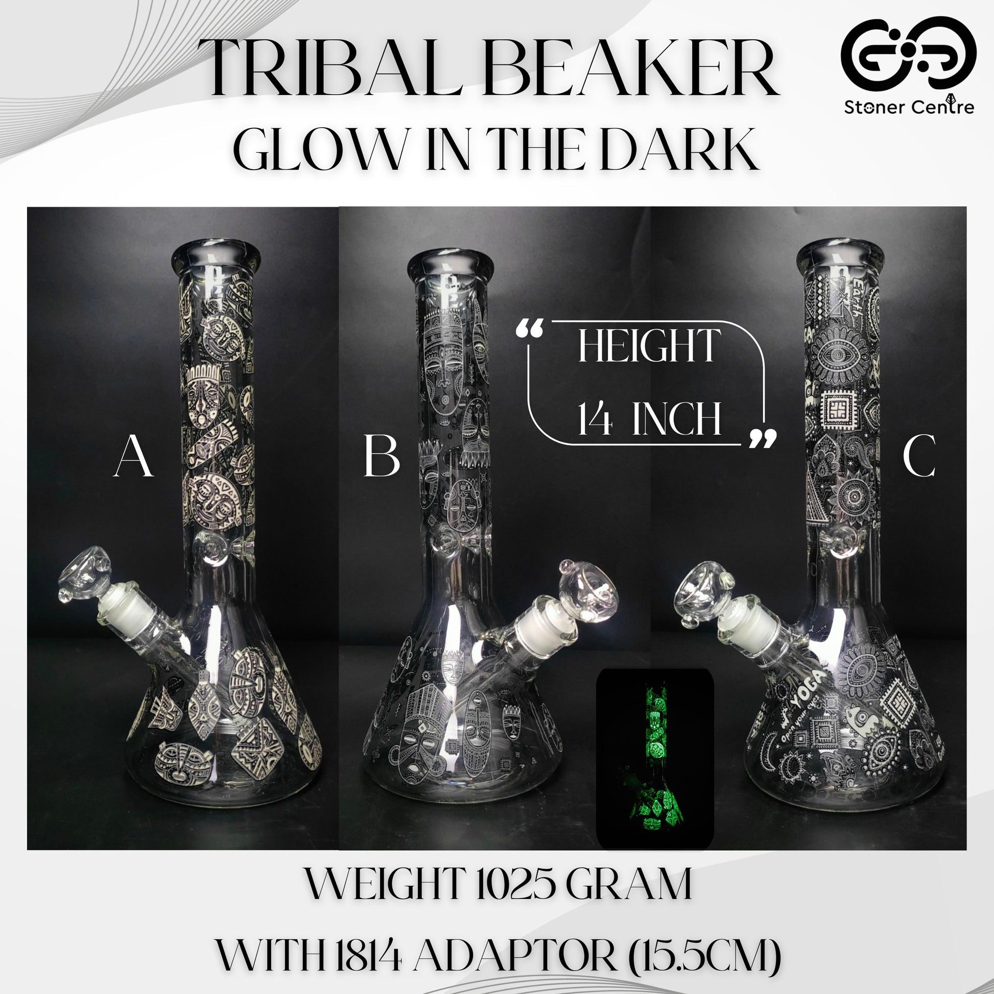 Glass Bong | TRIBAL GLOW IN THE DARK 14 INCH