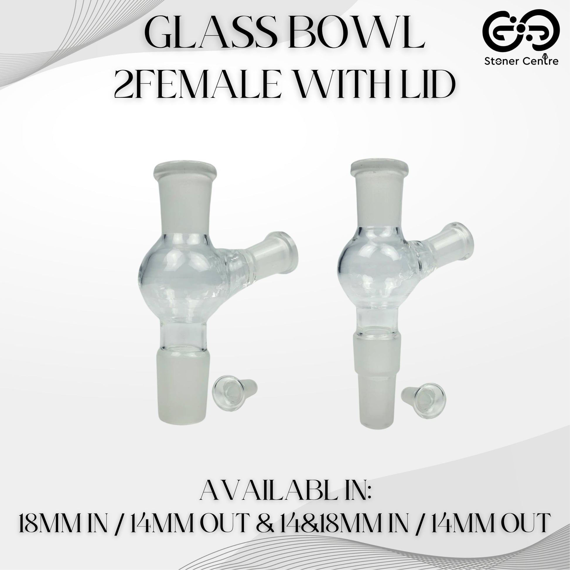 GLASS TUBE | GLASS BOWL 2FEMALE WITH LID 18MM IN / 14MM OUT & 14&18MM IN / 14MM OUT