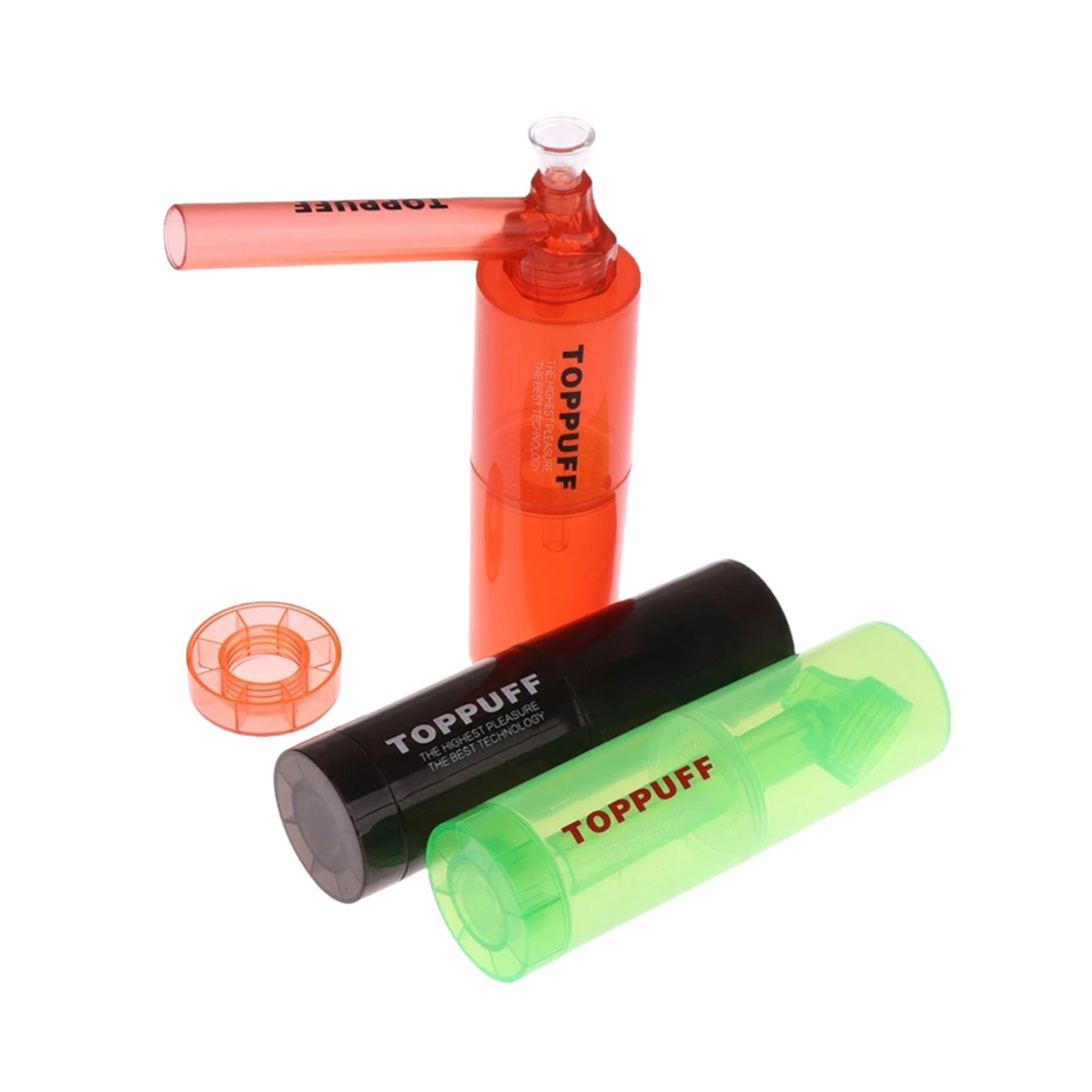 Top Puff V.2 is the latest version of the portable plastic water pipe, designed for quick and easy use in just a few steps. Simply screw it onto a standard plastic bottle, and you instantly have a ready-to-use water pipe. Made from high-quality, durable plastic, it's lightweight and easy to carry—perfect for travelers and outdoor use.